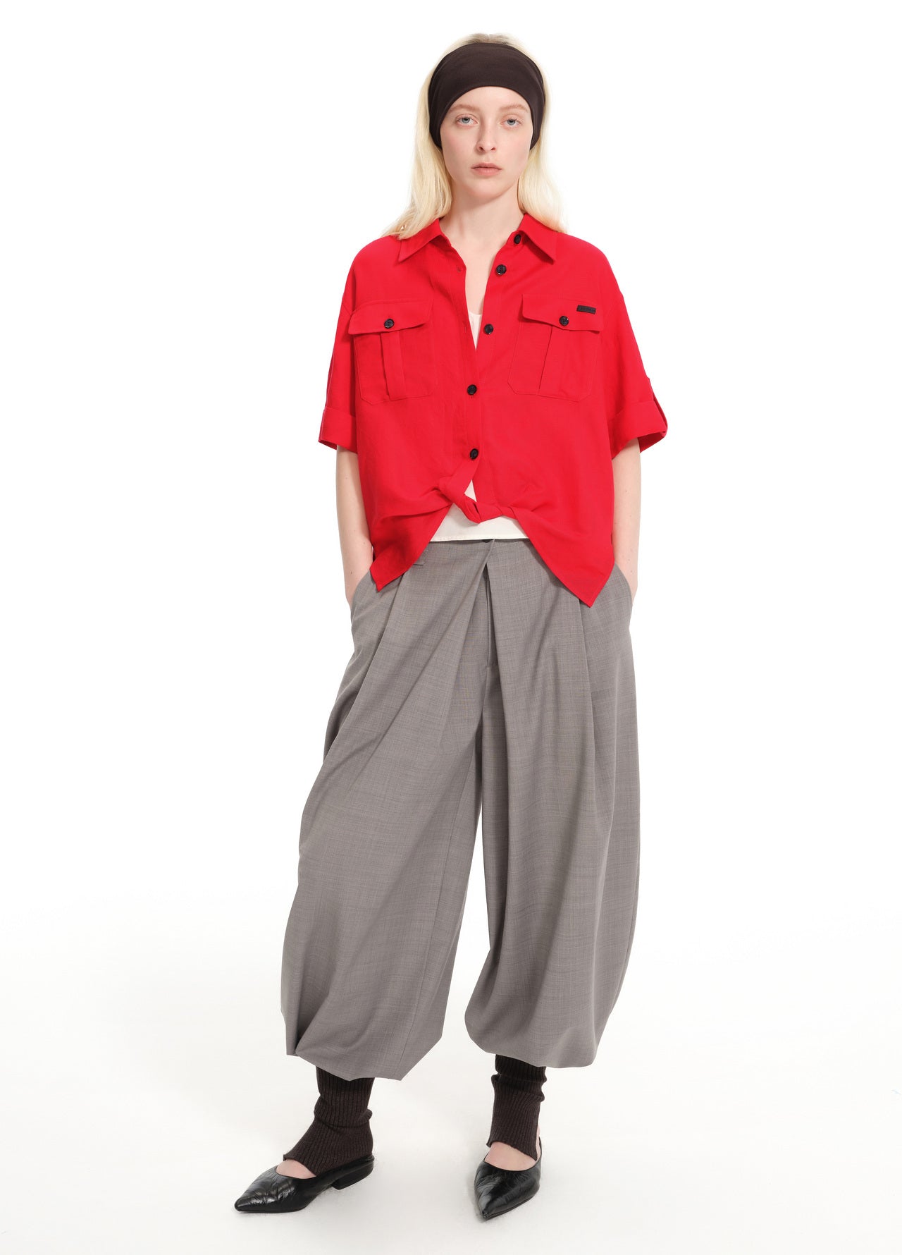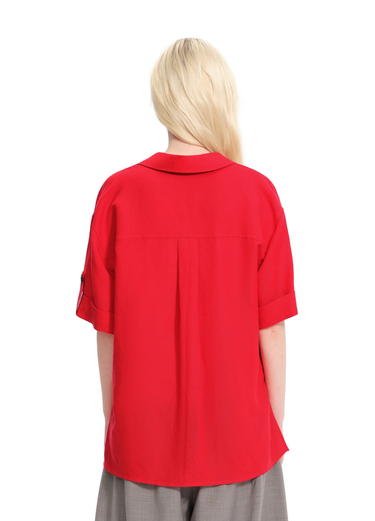 Equestrian red deep scoop-neck utility shirt