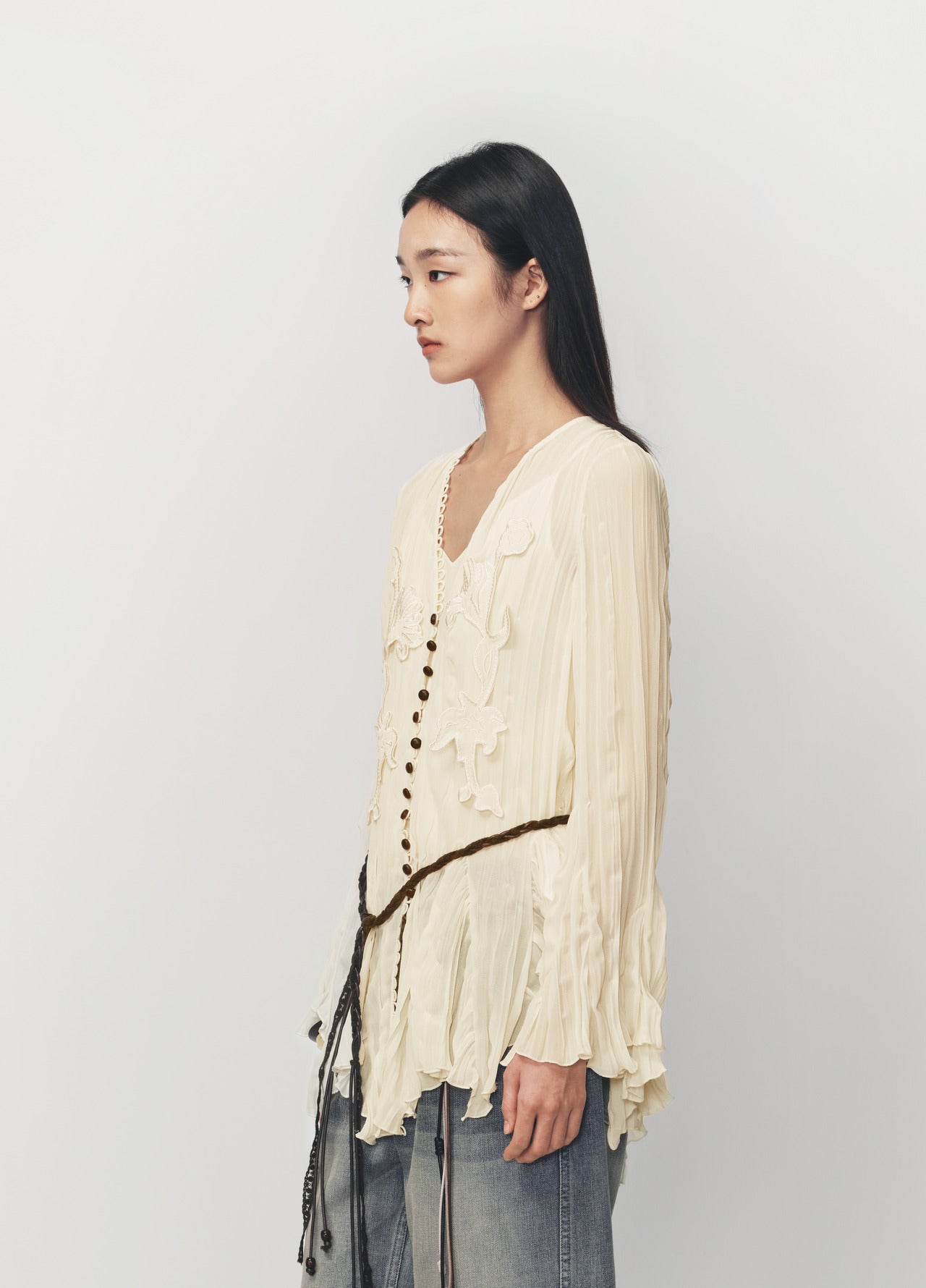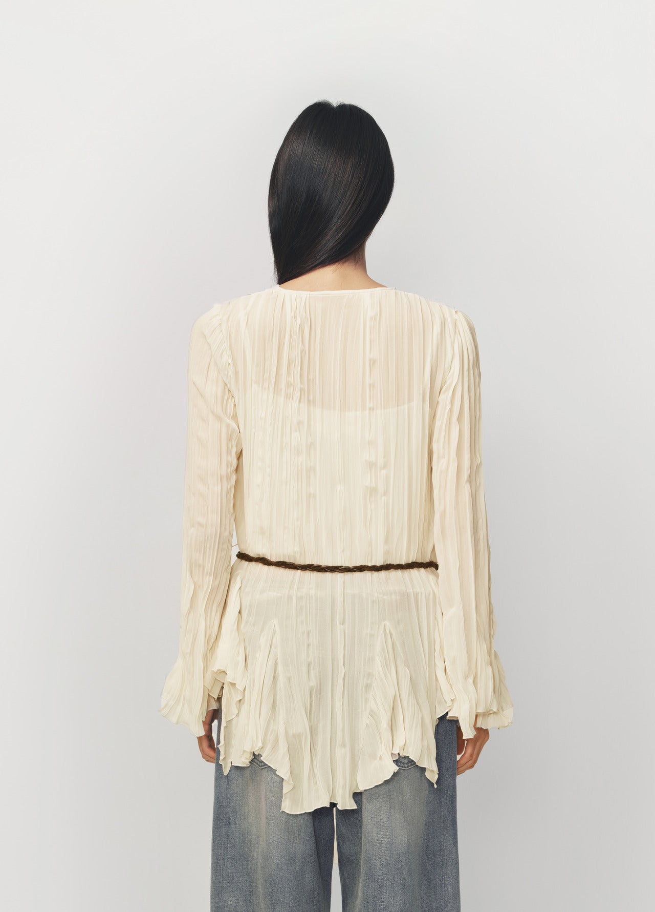 Off White Pleated Textured Long Top