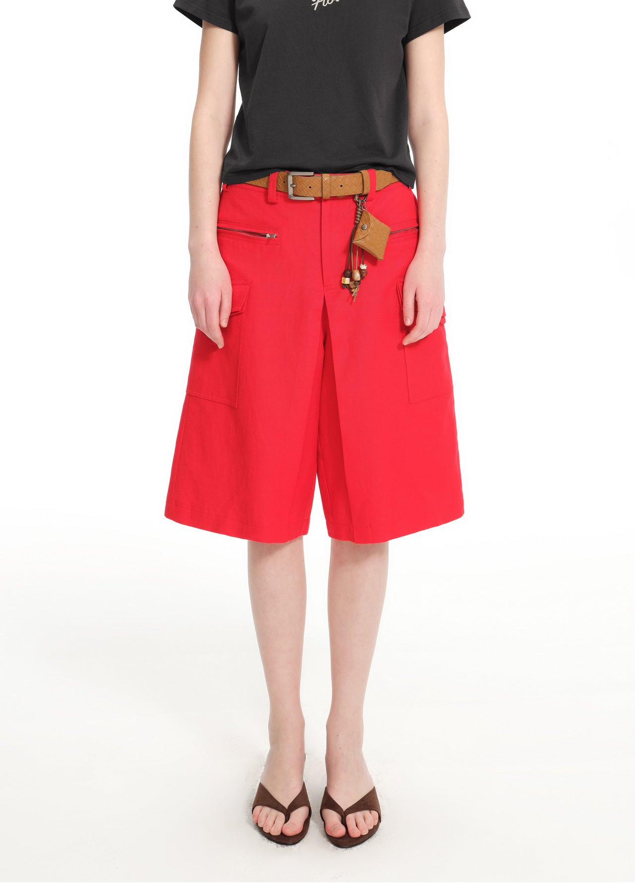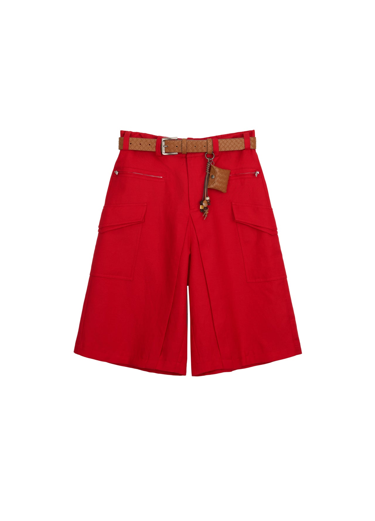 Equestrian red A-line shorts with woven belt detail