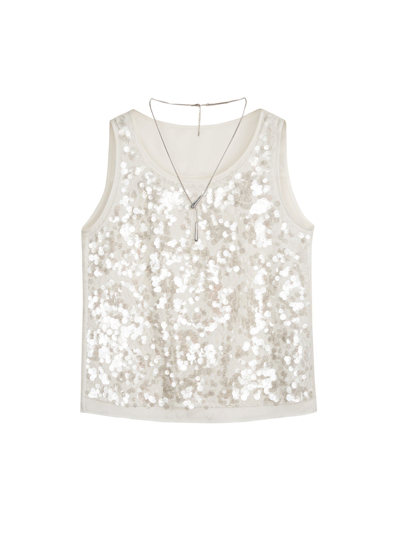 Inner Fabric 1: 100% Acetate (Excluding trims); Sequin Fabric 2: Base: 100% Polyester, Thread 1: 100% Polyamide, Thread 2: 100% Polyester