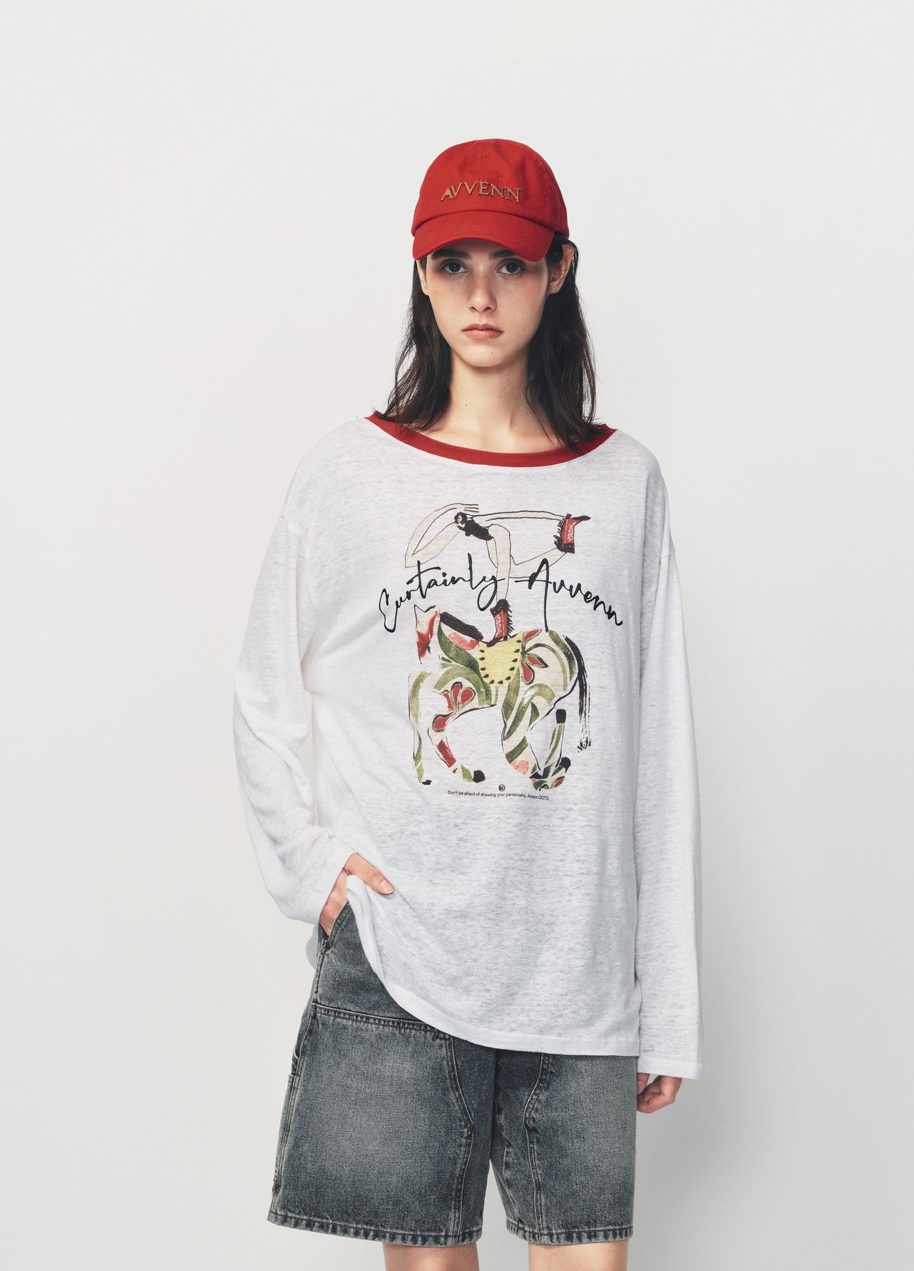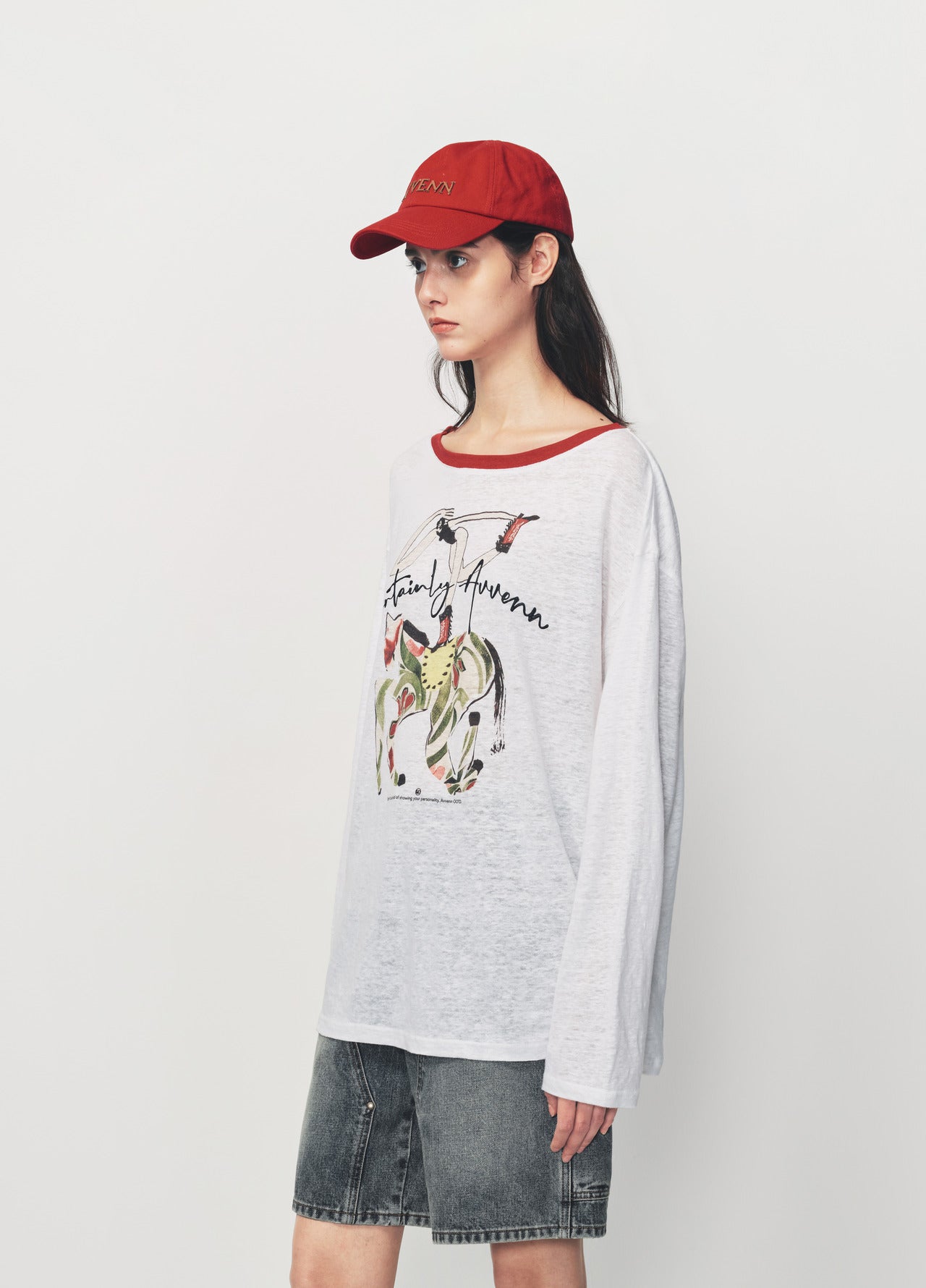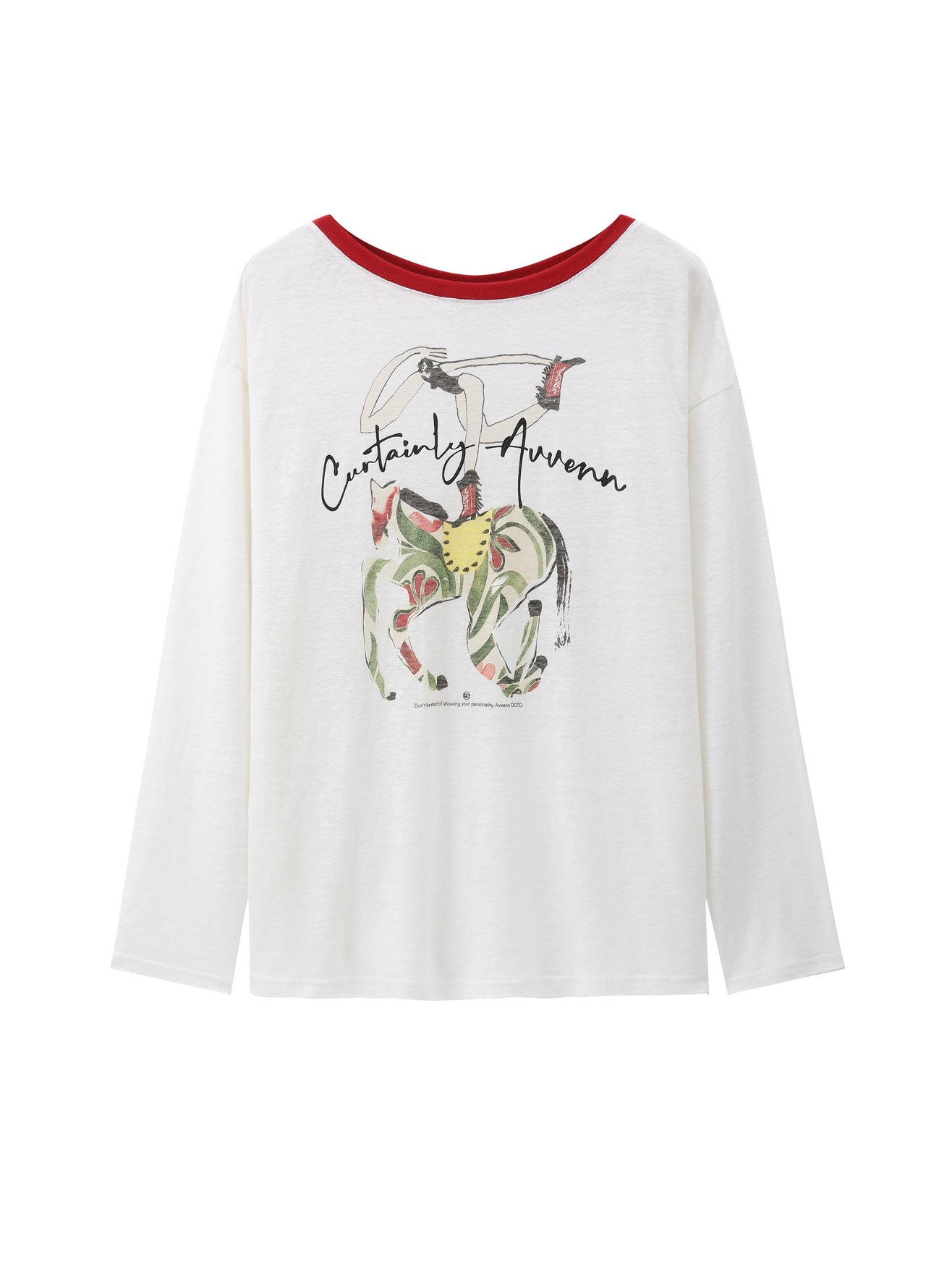 White Bamboo Horse Print Red Collar T Shirt