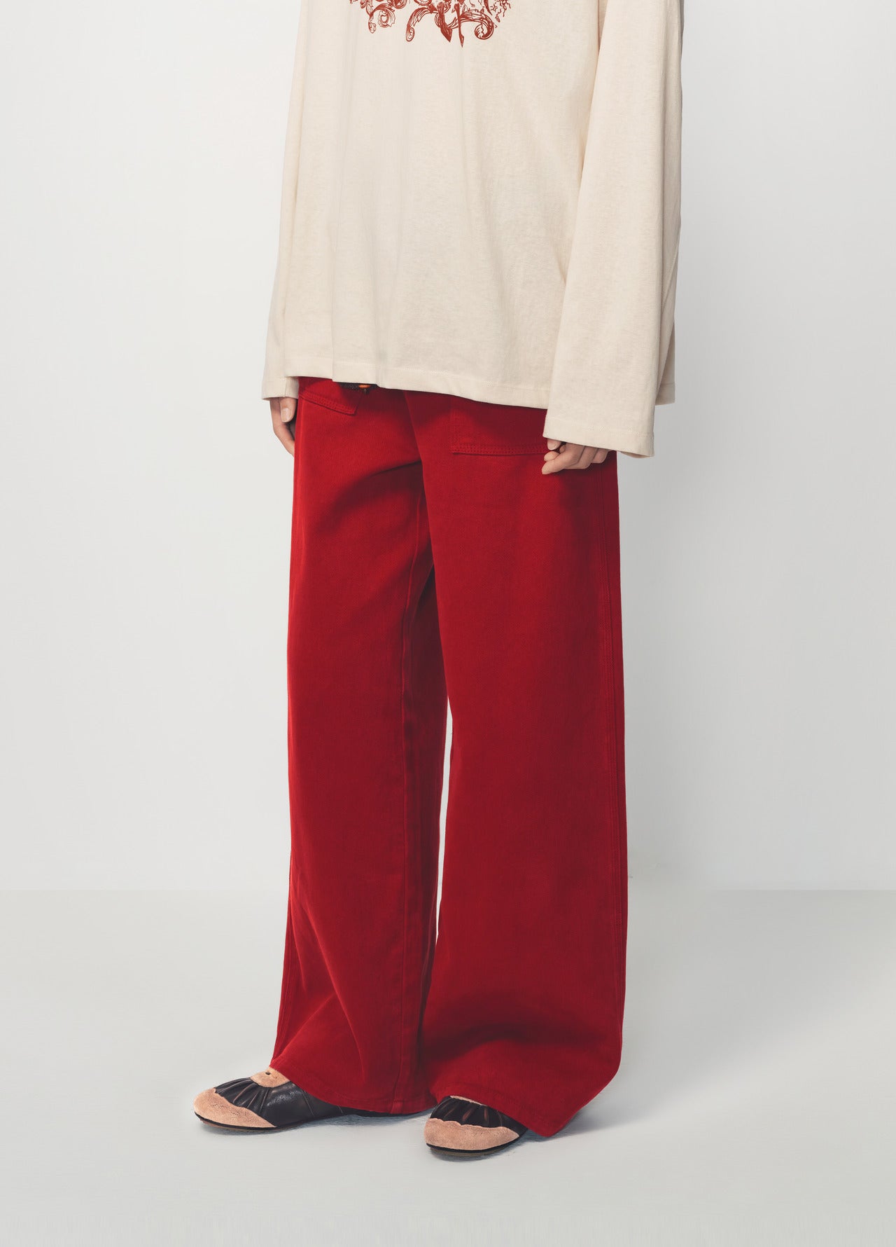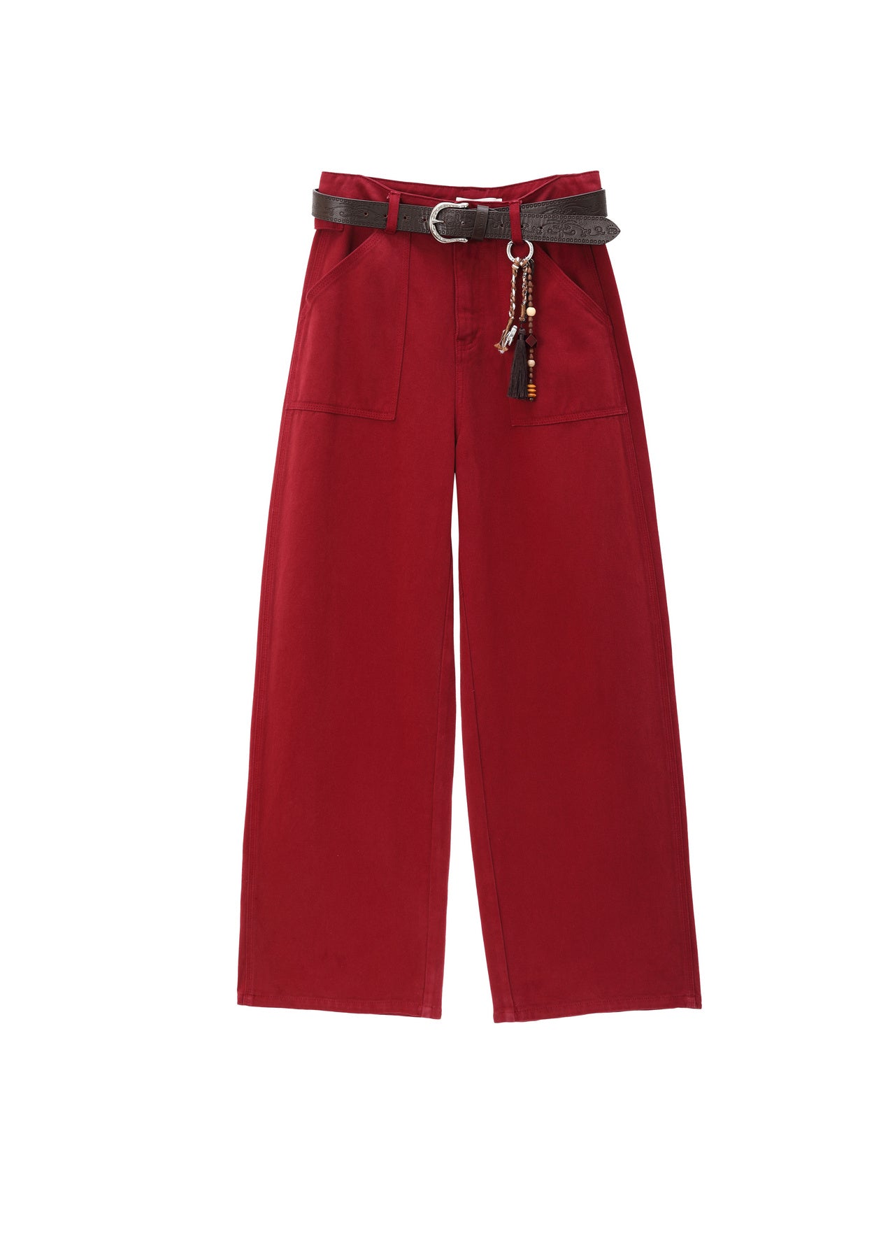 Burgundy Bamboo Horse Charm Wide Leg Denim Jeans