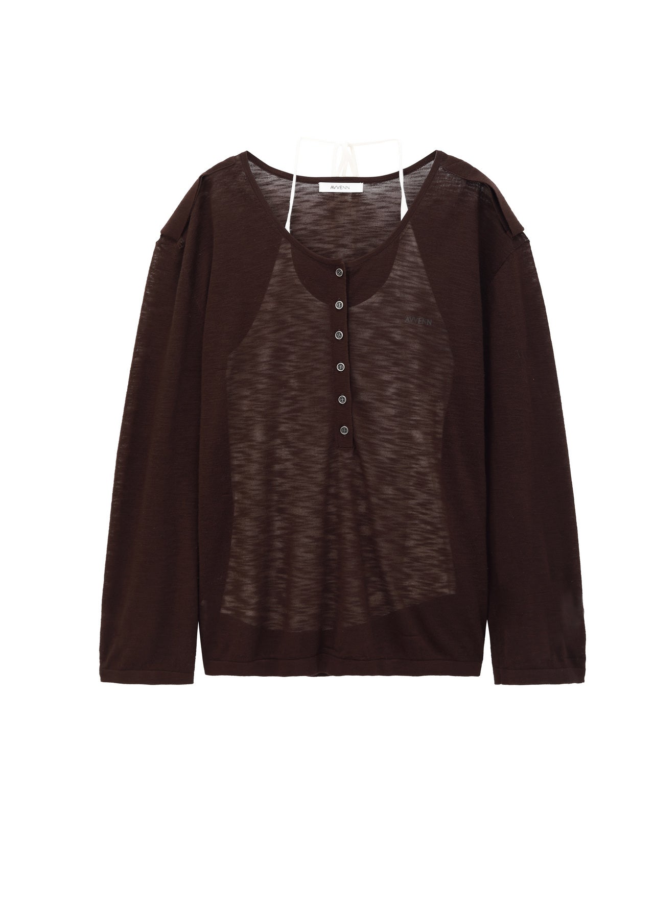 Chocolate Brown Henley U Neck Knit Two Piece Set