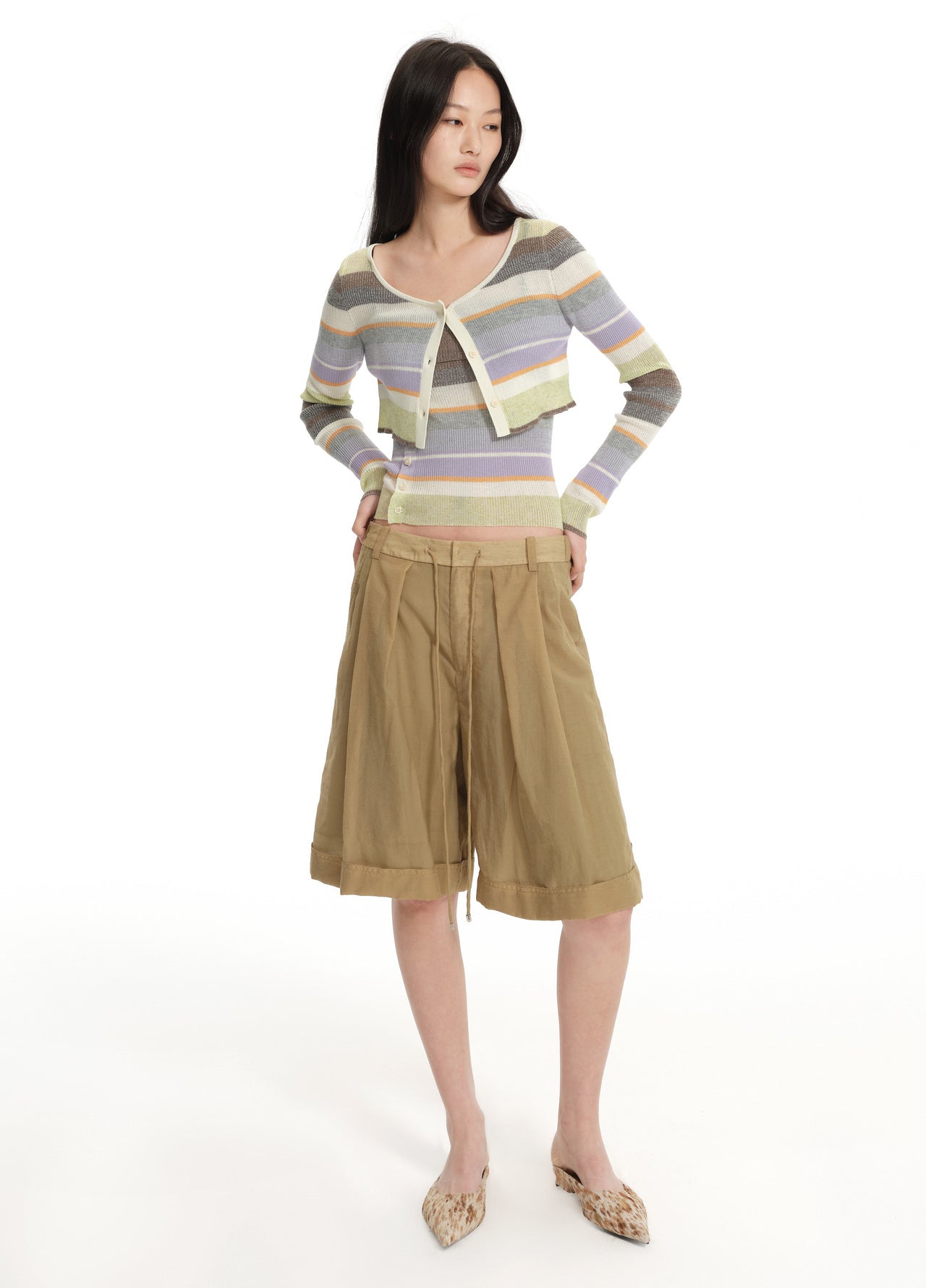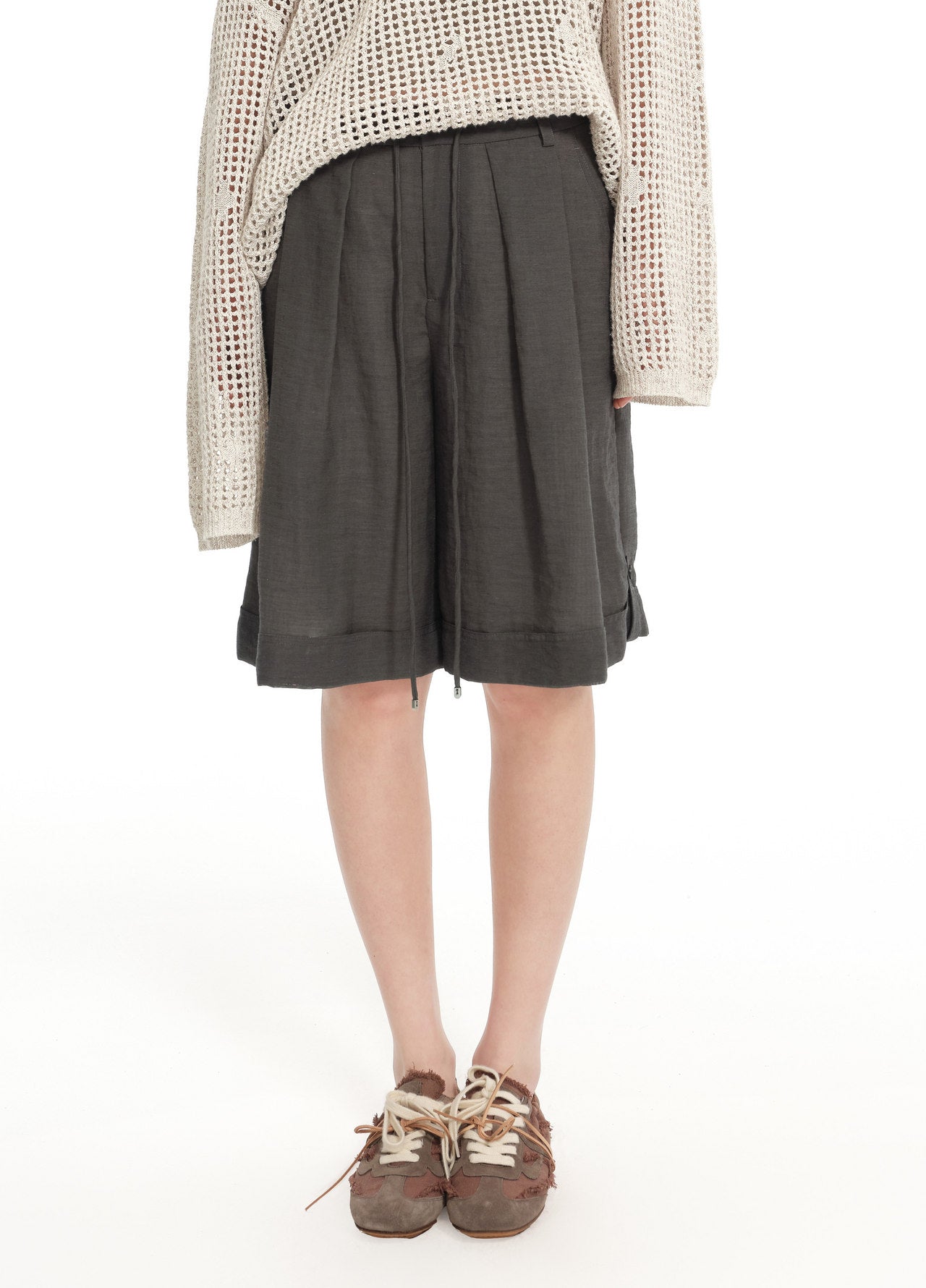 Pleated Drawstring Tapered Pants
