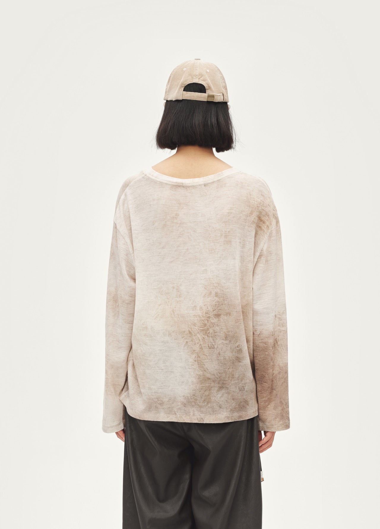 100% fine-wool printed T-shirt/feather gradient print for strong visual impact/special slub texture/soft and skin-friendly