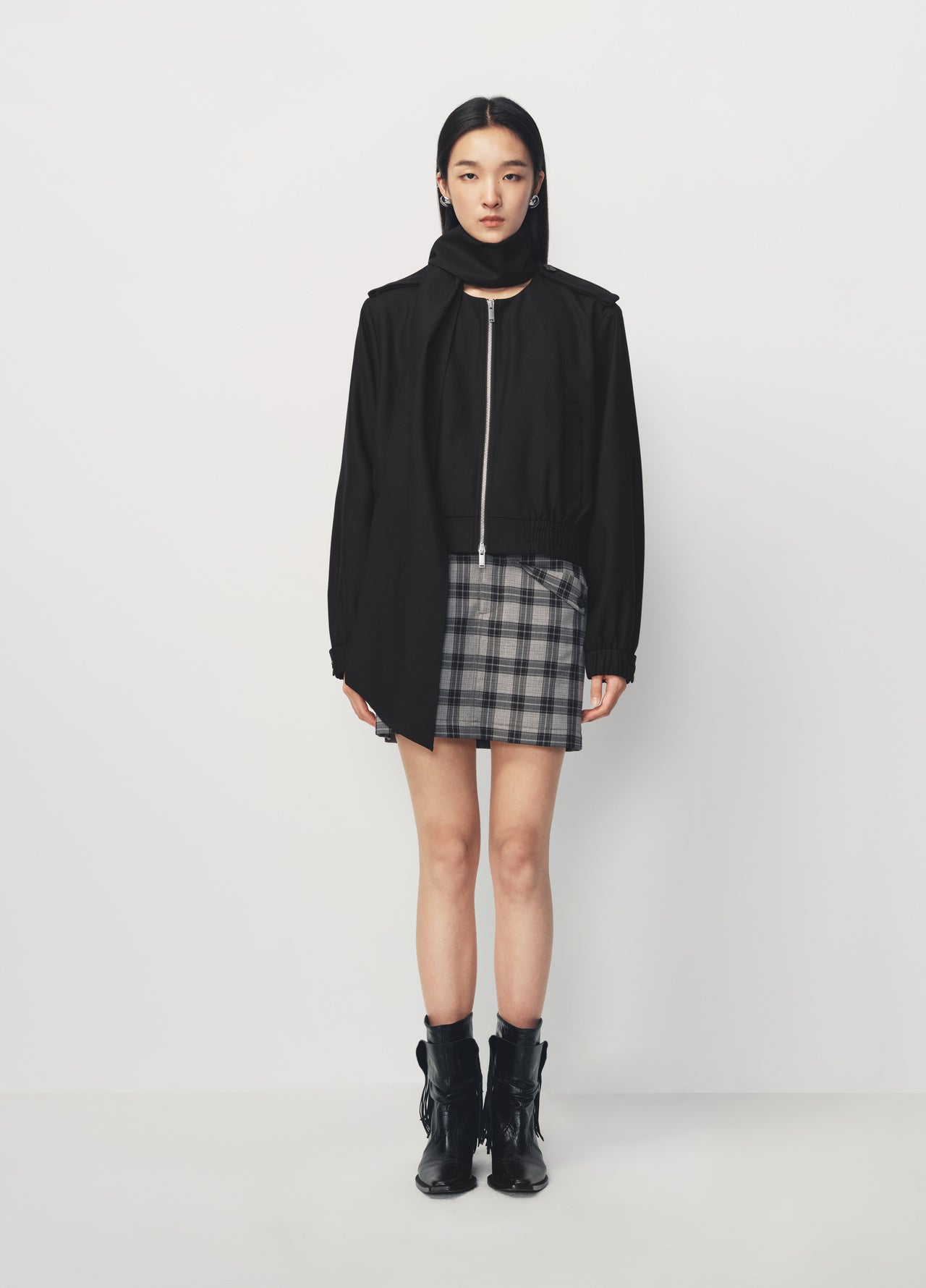 Grey Black Large Plaid Cuff Pocket Mini Skirt