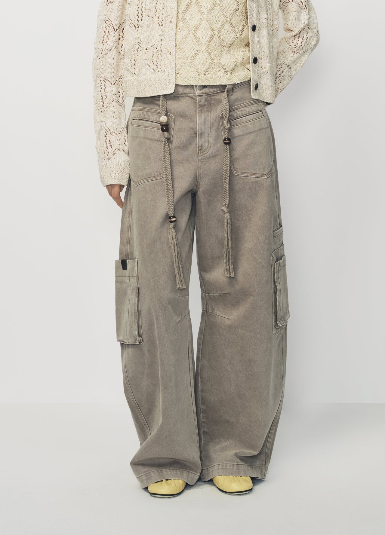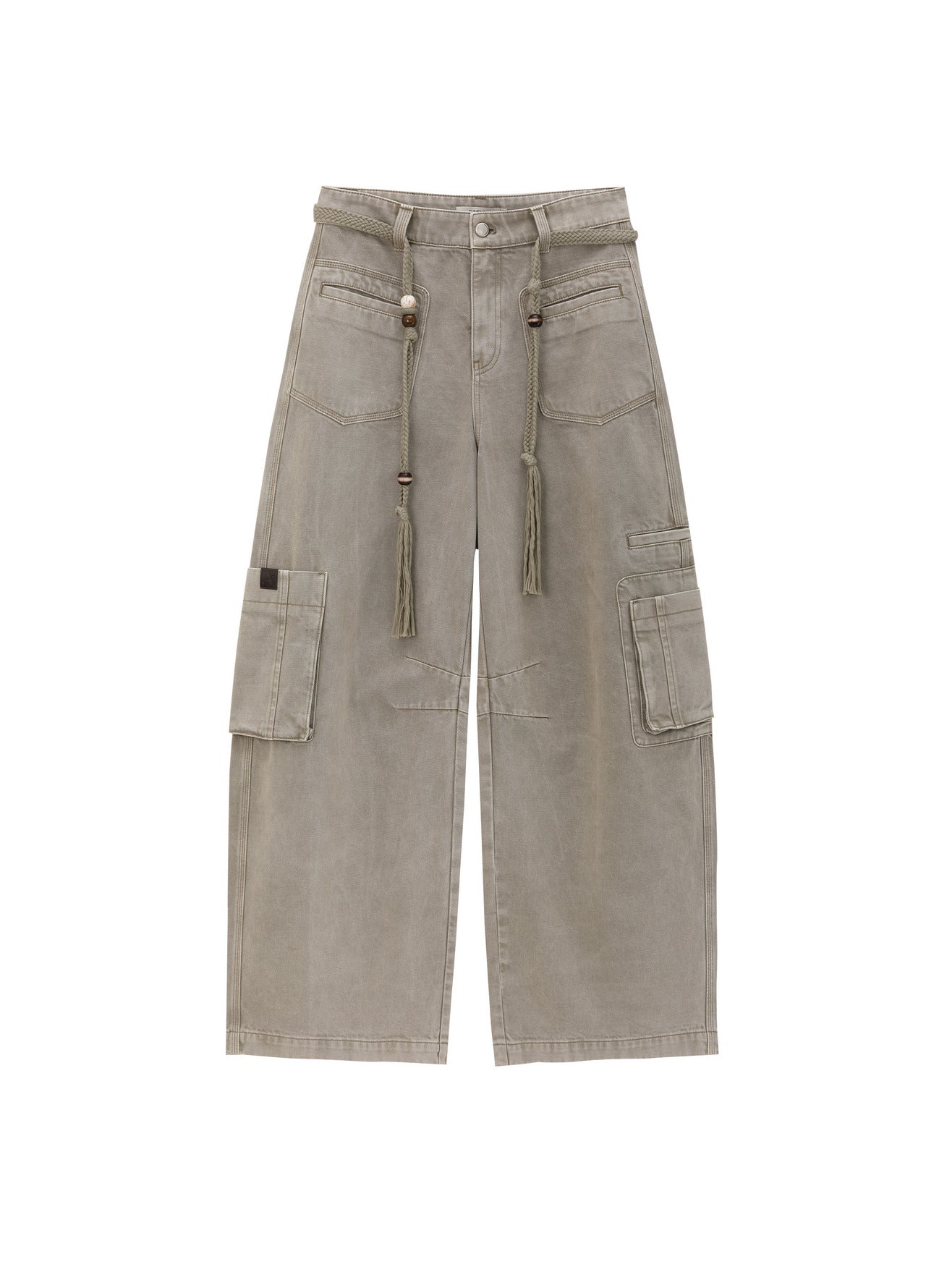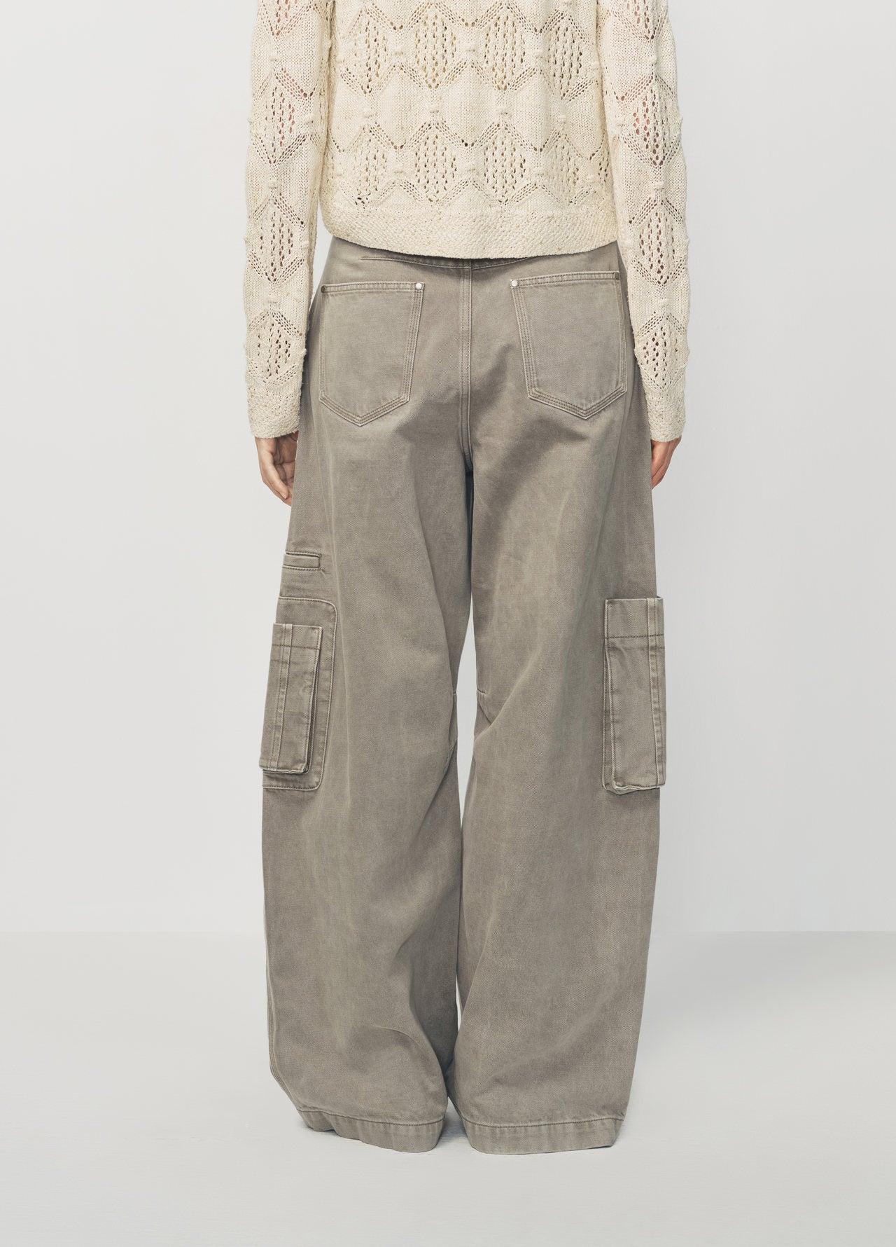 Grey Green Washed Utility Style Denim Pants
