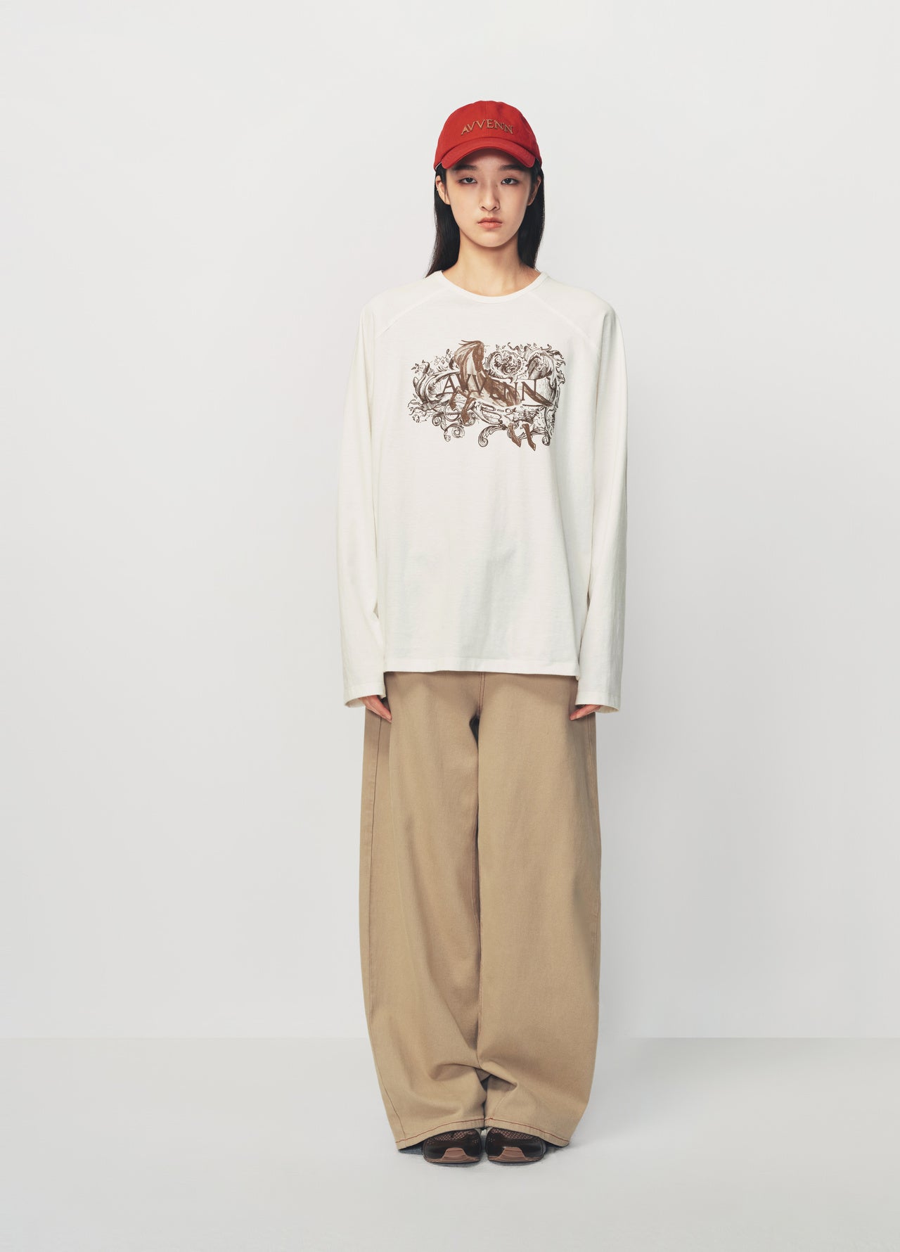 Khaki High-Waist Wide-Leg Denim Pants with Red Belt