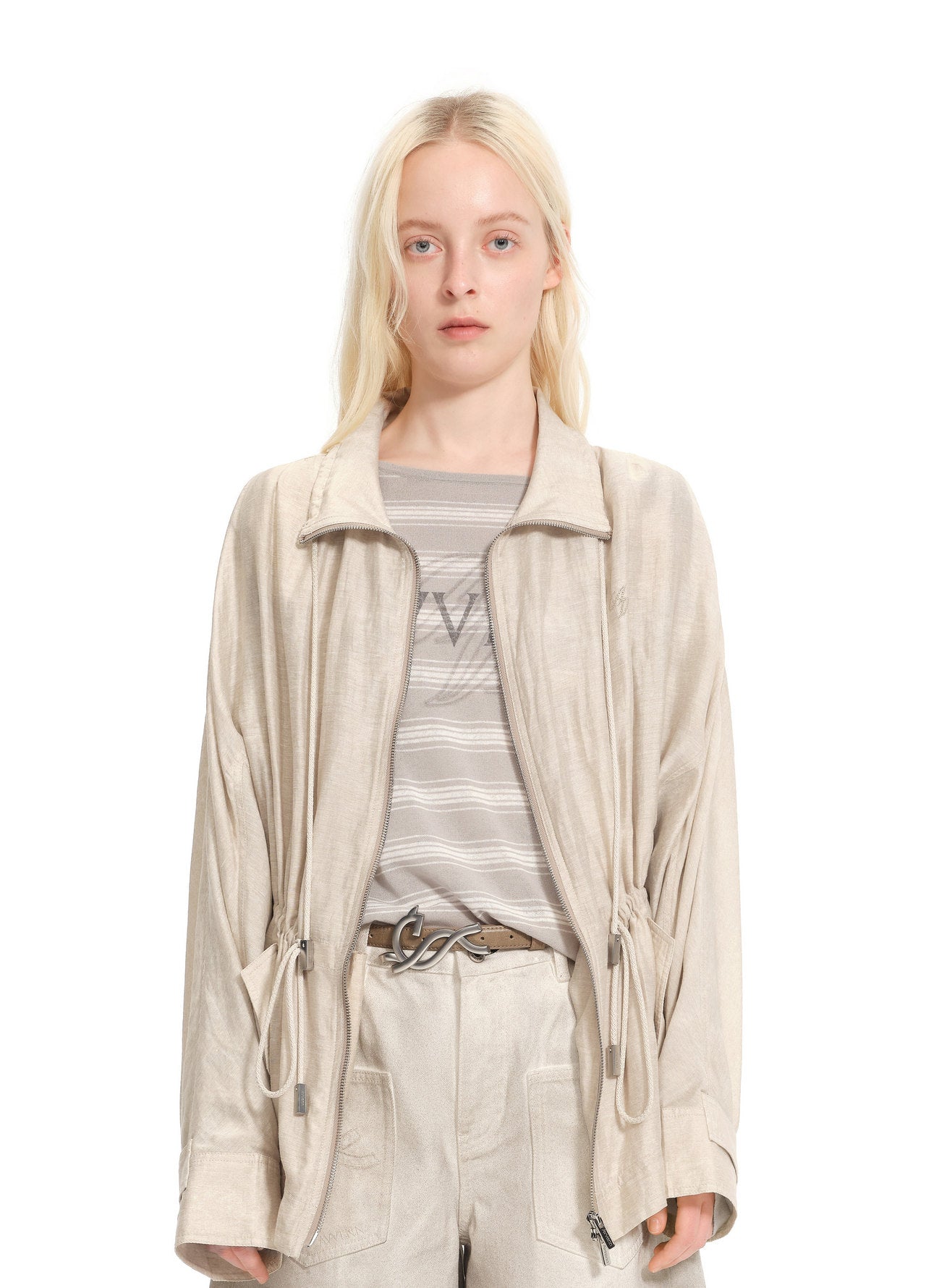 Linen-feel drawstring jacket