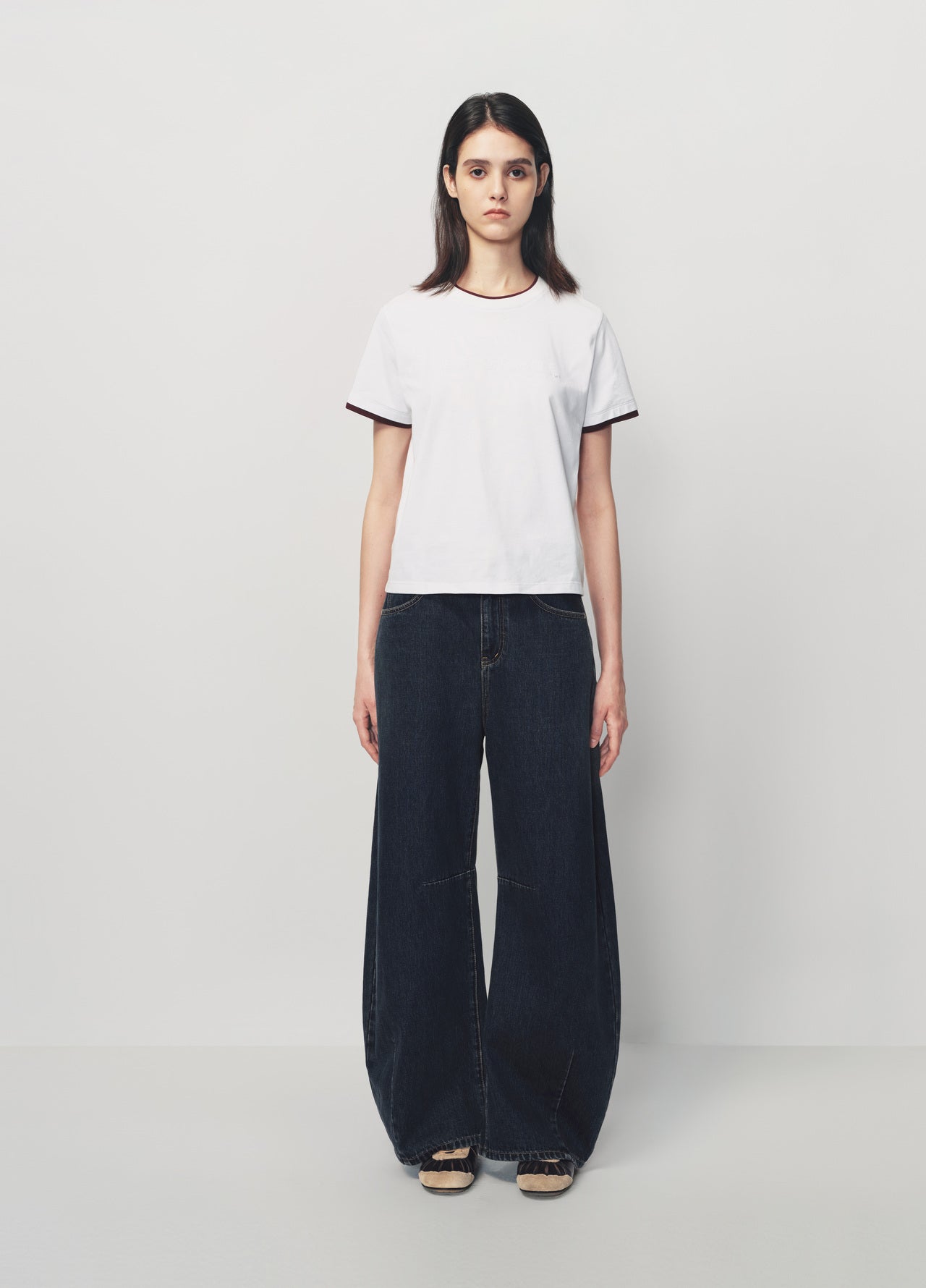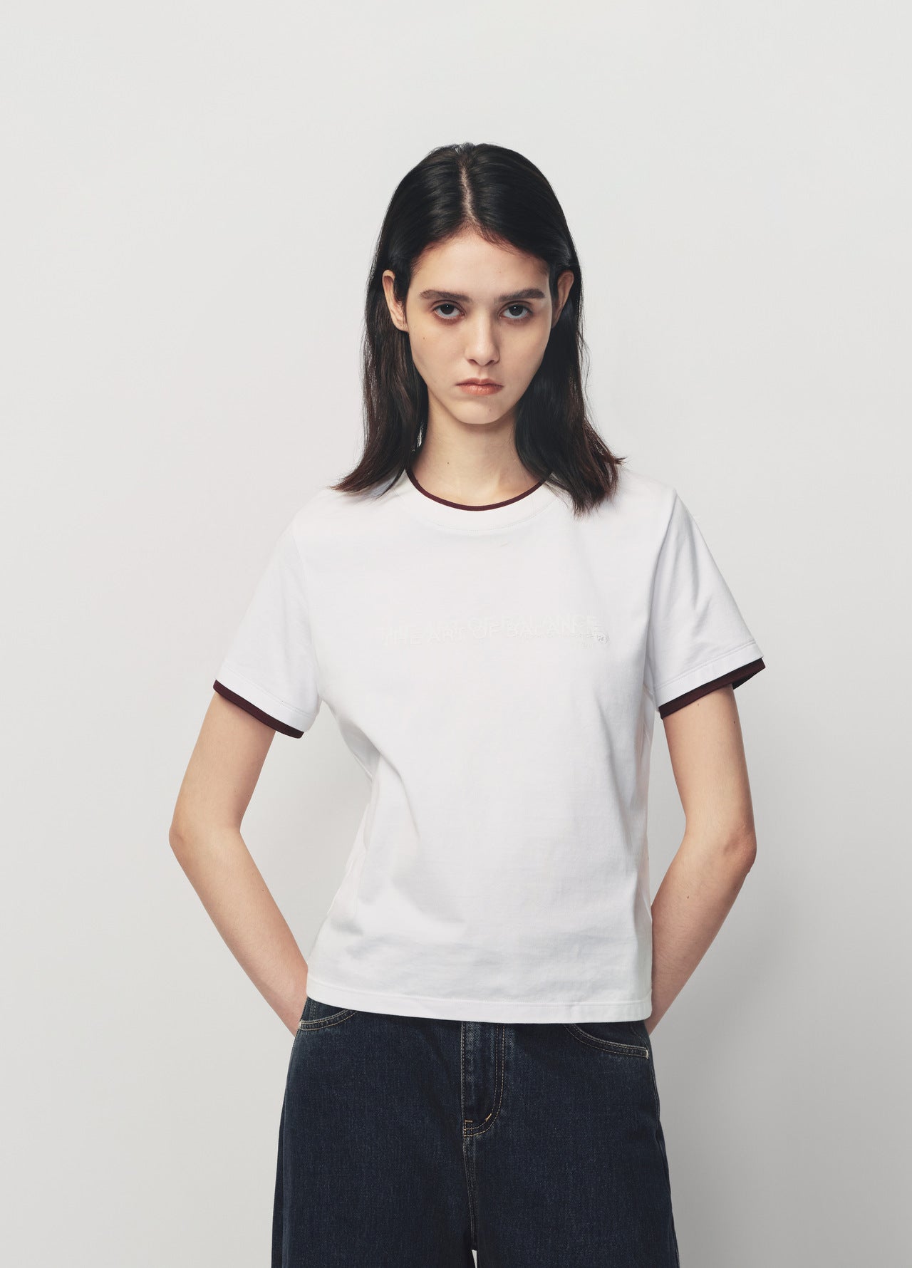 White Contrast Trim Slogan Print T Shirt