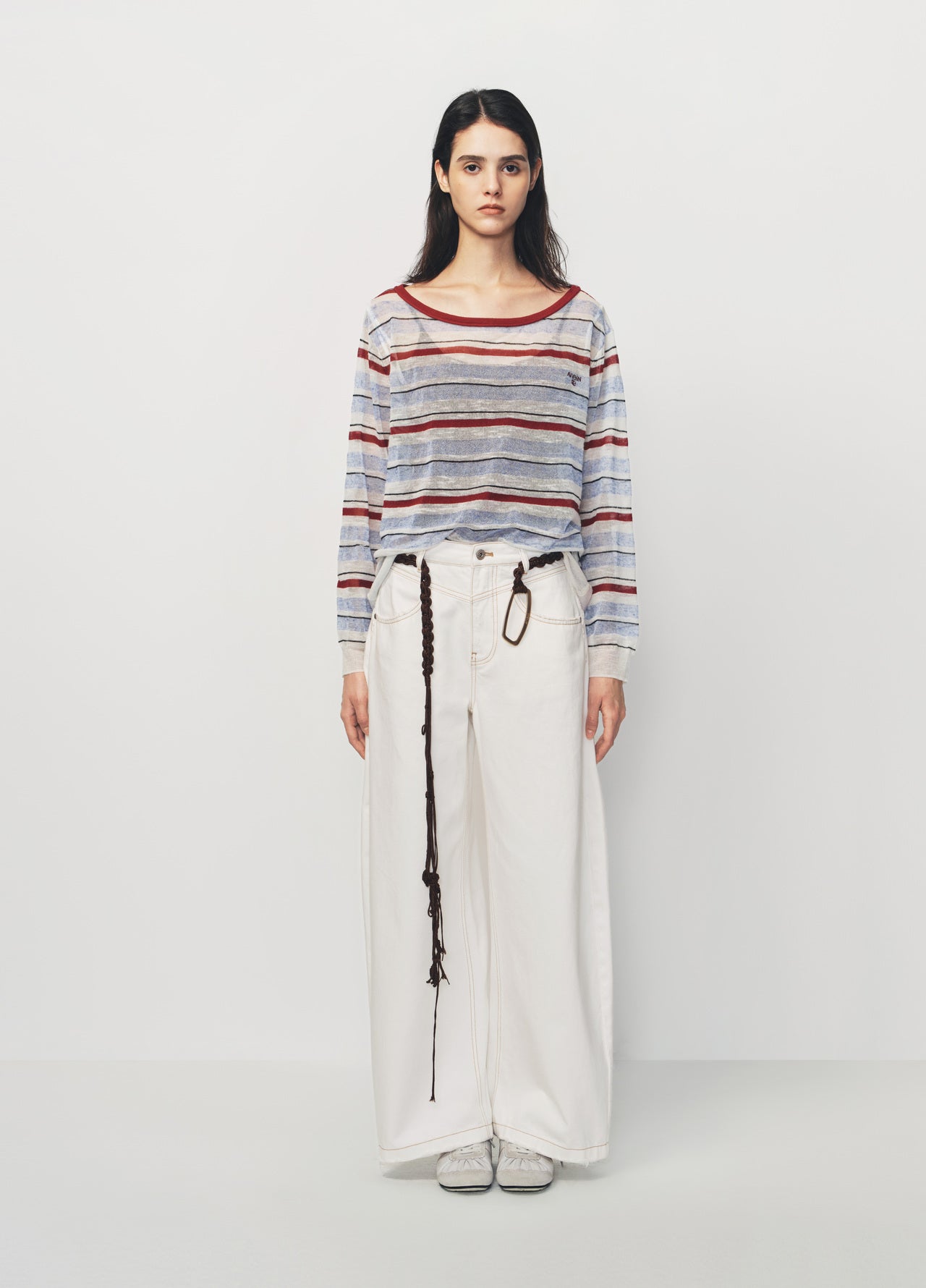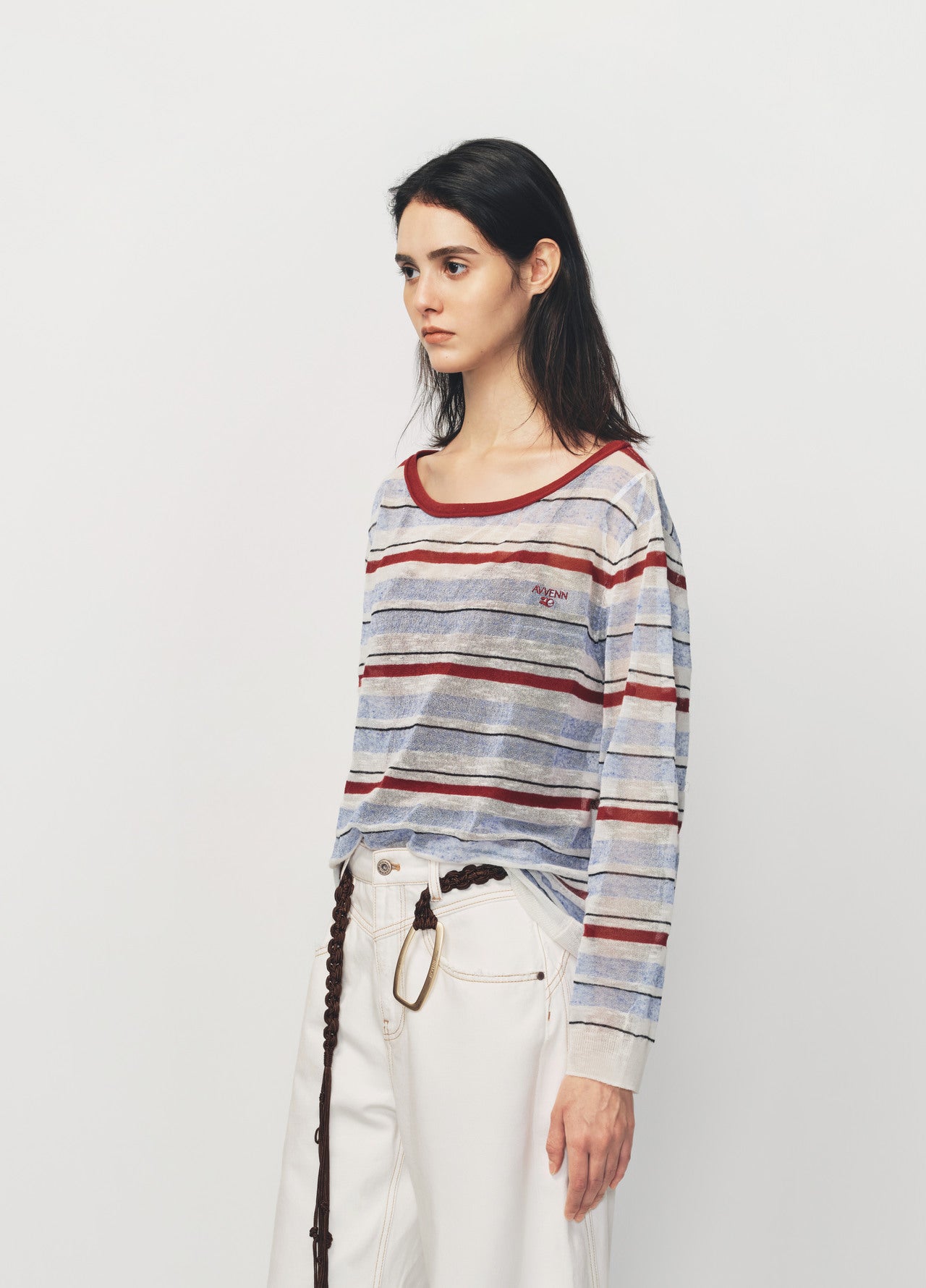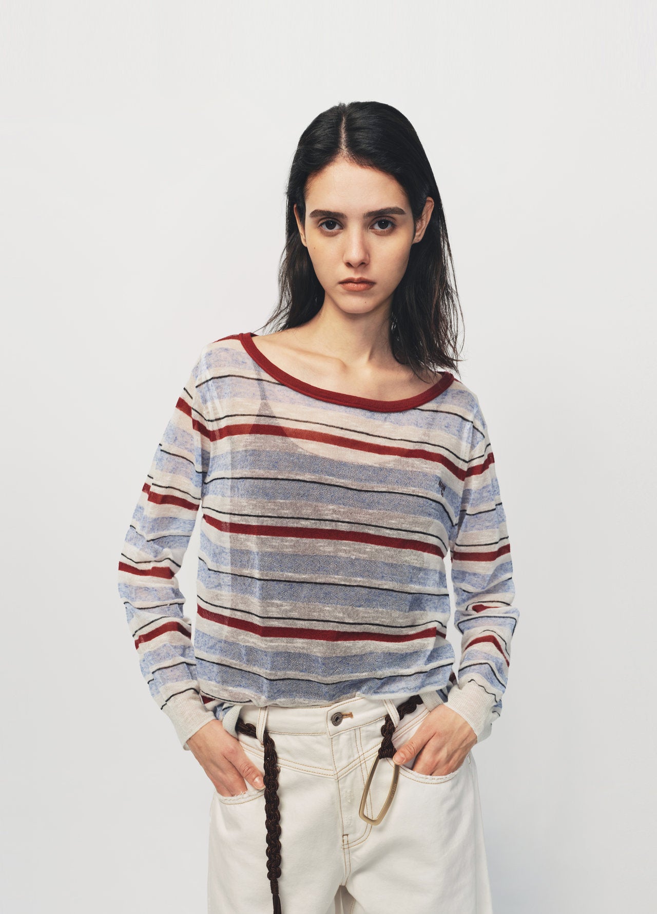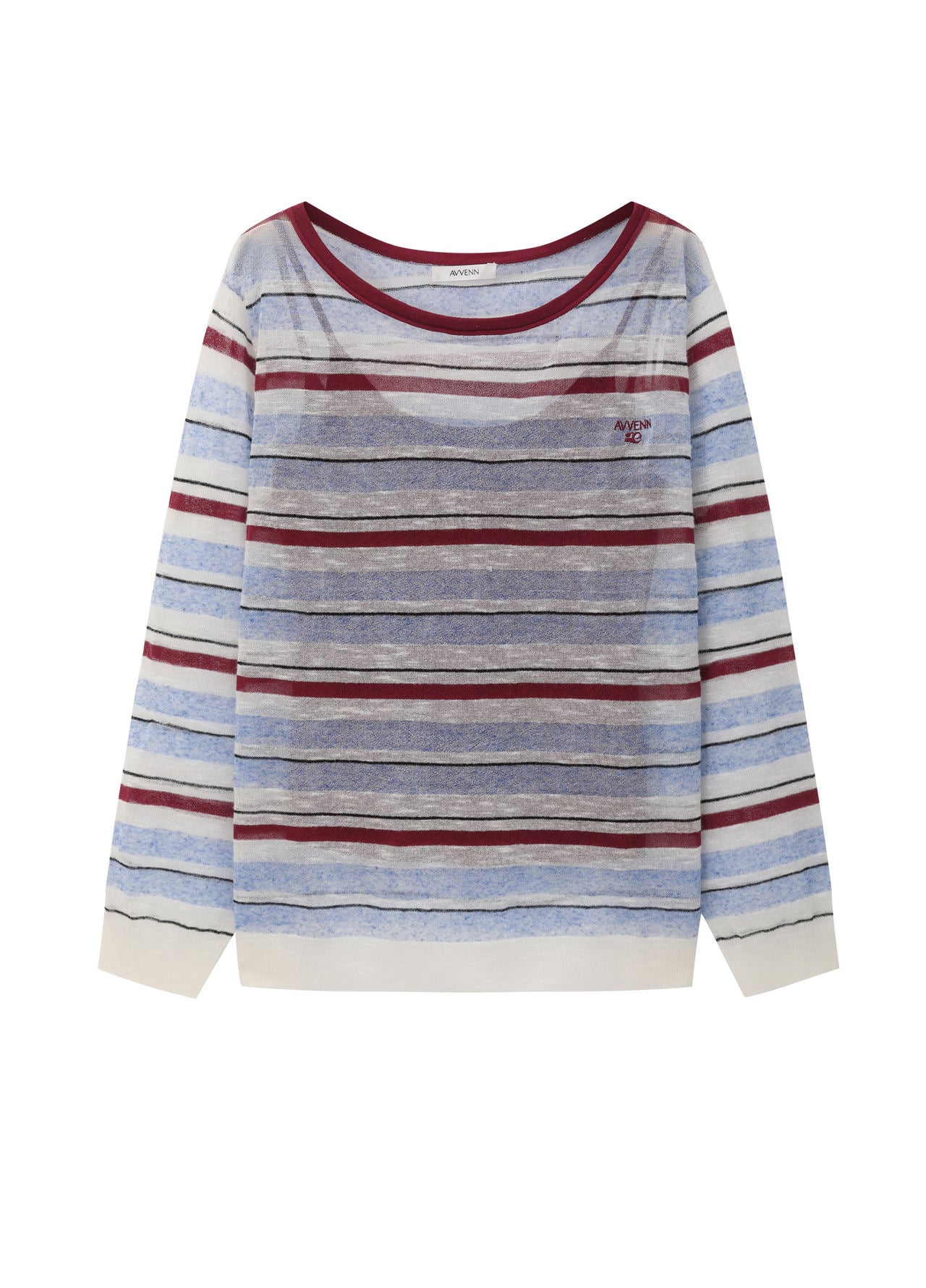 Relaxed Blue Red Striped Contrast Knit Sweater